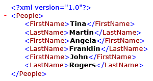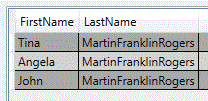 You select <FirstName> as the master element. The default setting for the repeating <LastName> element is Concatenate, which results in the following database table.