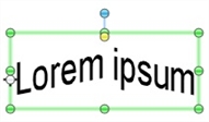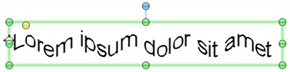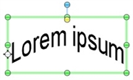 To adjust the degree of side movement of a selected bend text object, drag the yellow sizing handle to adjust the appearance. Objects that have a Side Movement setting of Independent have two sizing handles, because the degree of bend for the top and bottom or left and right of the text line can be controlled independently. You can use the options of the bend text object to create various text effects. For more information, refer to Bend and Skew Text Examples.