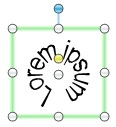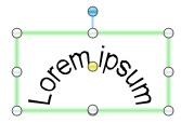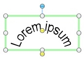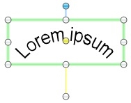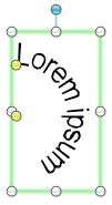 To adjust the degree of side movement of a selected curve text object, drag the yellow sizing handle to adjust the appearance. Objects that have a Side Movement setting of Independent have two sizing handles, because the degree of curve for the top and bottom or left and right of the text line can be controlled independently.