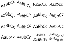 The following text objects are normal text objects that have transforms applied to them that change the shape of the text. Point to a transformed text object in the menu to see a tooltip that displays the name of the object type.