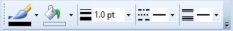 The line and shape toolbar provides you with lists and buttons that you can use to modify the fill and stroke of line and shape objects.