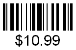 The barcode below contains the numeric data string "1099", and the character template reads "$??.??".