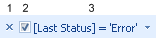 When you apply a filter to the print job data, the filter definition is displayed in a footer at the bottom of the selected pane. The filter footer includes the following options.