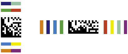 Extra Colors (Variant B): Places up to eight color fields along two of the edges of the Data Matrix symbol. The following images show a standard configuration for a square and rectangular symbol.