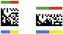 Utilizando la opción Campos de color, se pueden situar hasta ocho campos de color, dependiendo del código Data Matrix. Cuando estén correctamente dispuestos, el símbolo código de barras se puede leer y verificar el color en cualquier orientación. Para que los campos de color se lean correctamente, el color elegido debe destacar lo suficiente respecto al color de fondo del símbolo.