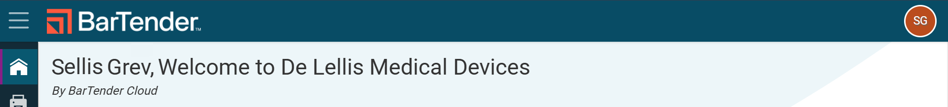 The menu provides access to the various pages that make up BarTender Cloud. To open the BarTender Cloud menu, click